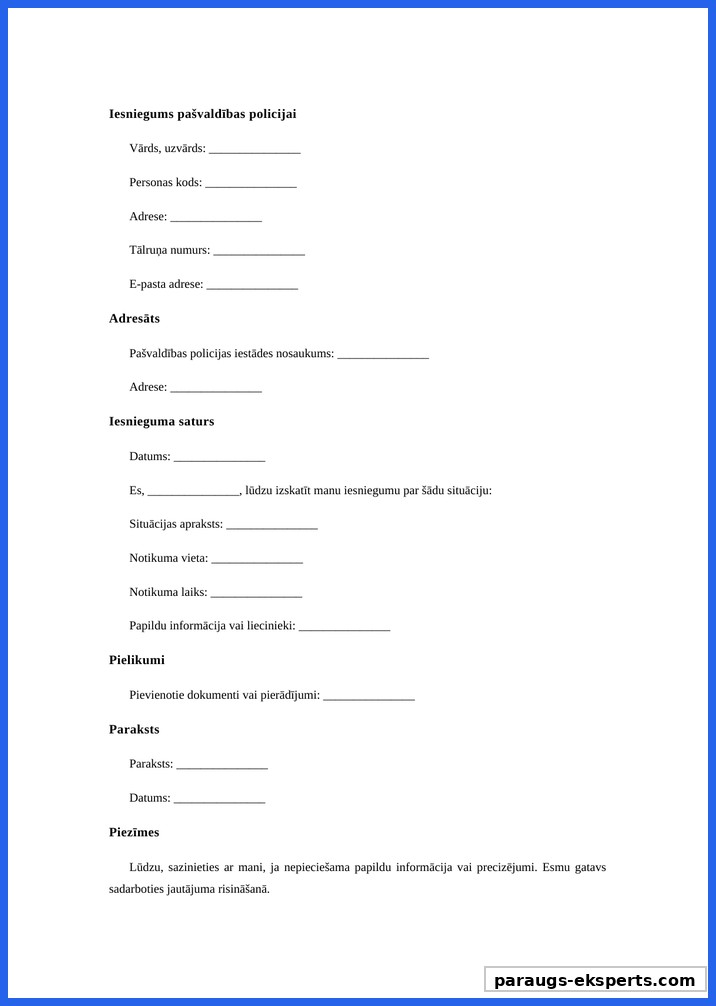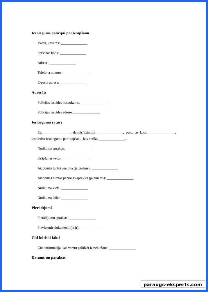 Iesniegums Policijai Par Krāpšanu Paraugs