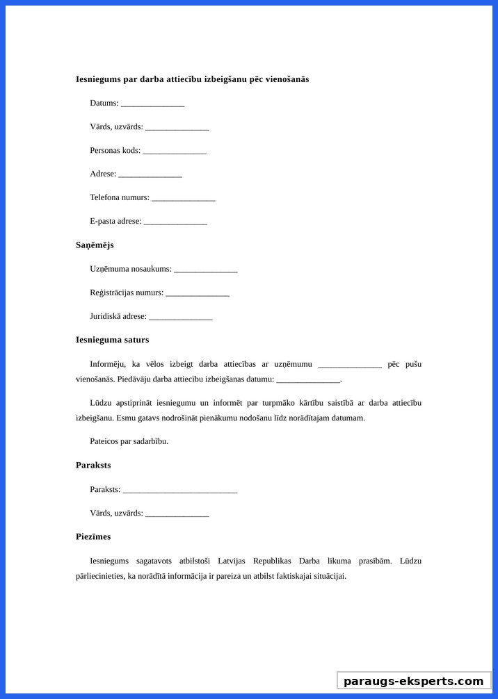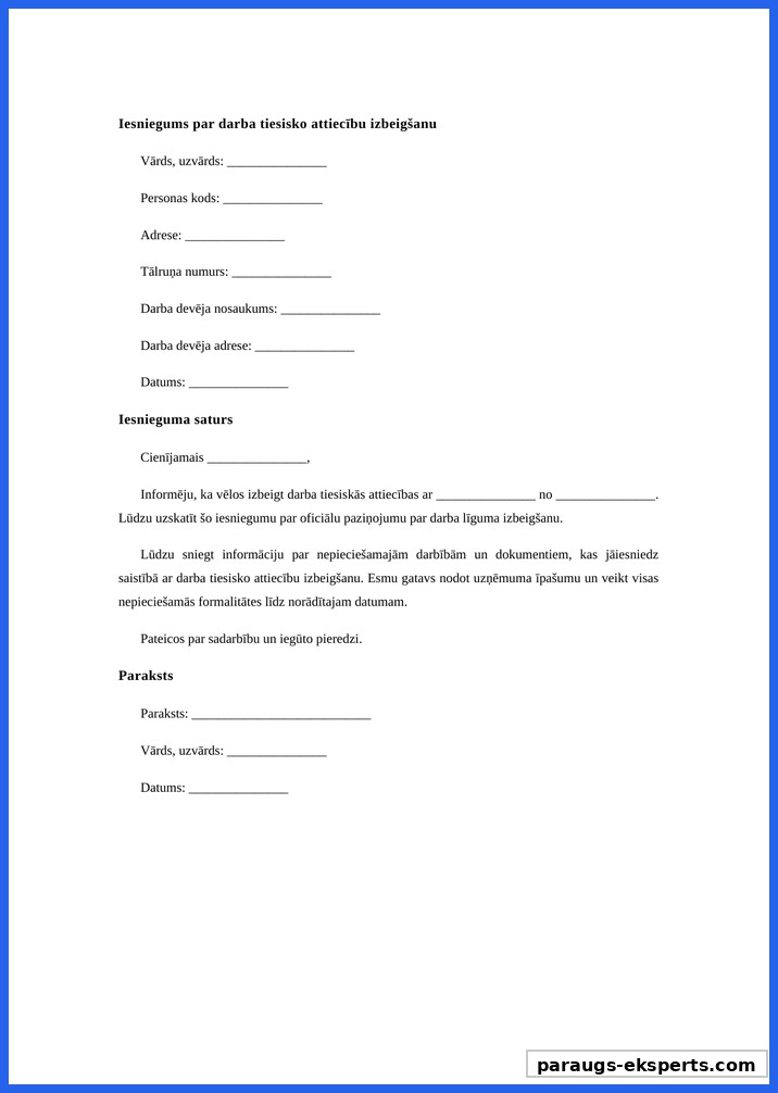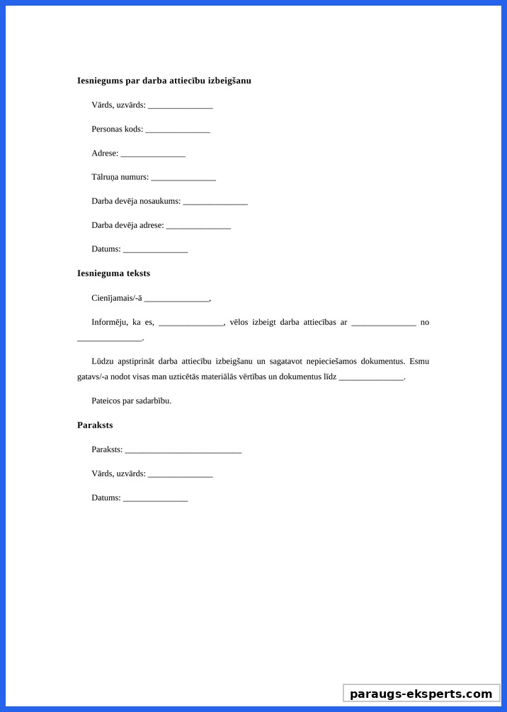 Iesniegums Par Darba Attiecību Izbeigšanu Paraugs
