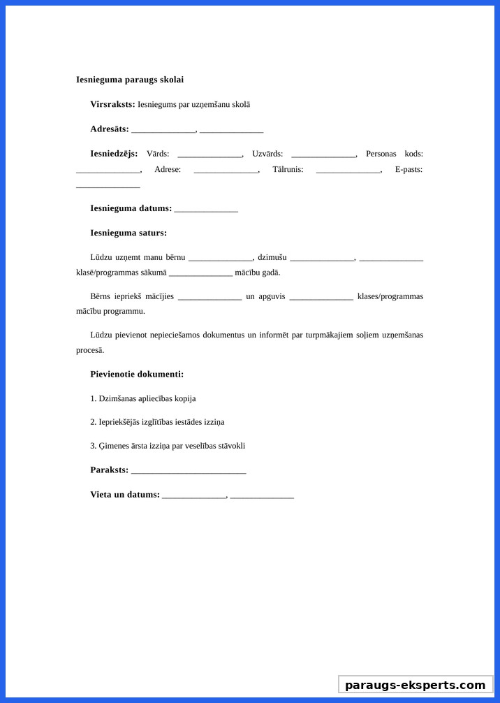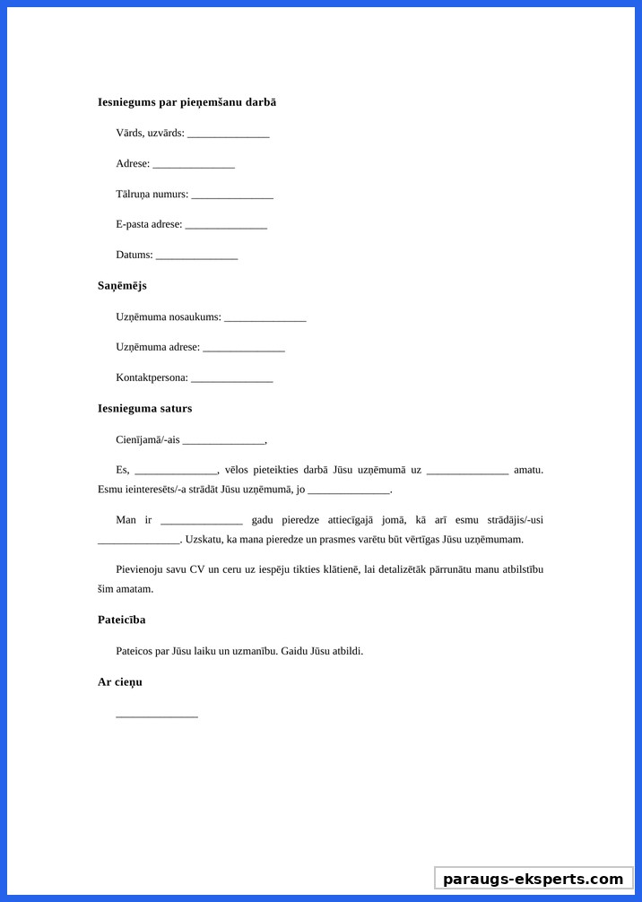 Iesniegums Par Pieņemšanu Darbā Paraugs