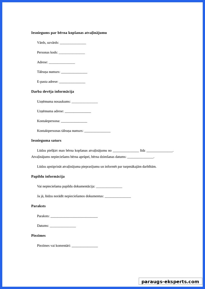 Iesniegums Par Bērna Kopšanas Atvaļinājumu Paraugs