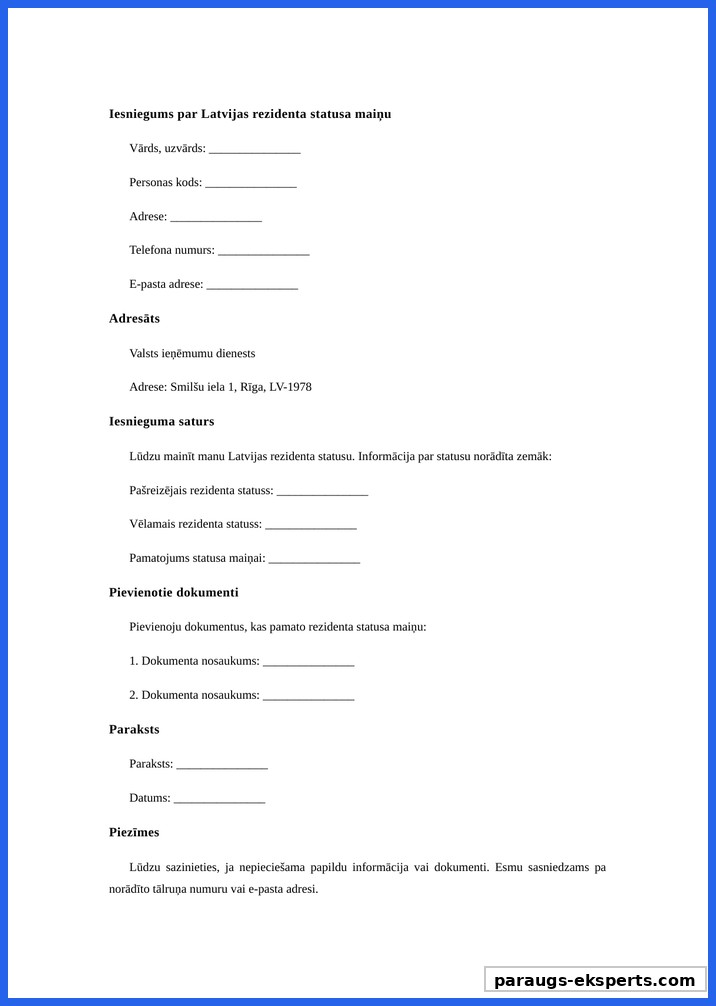 Iesniegums Par Latvijas Rezidenta Statusa Maiņu Paraugs