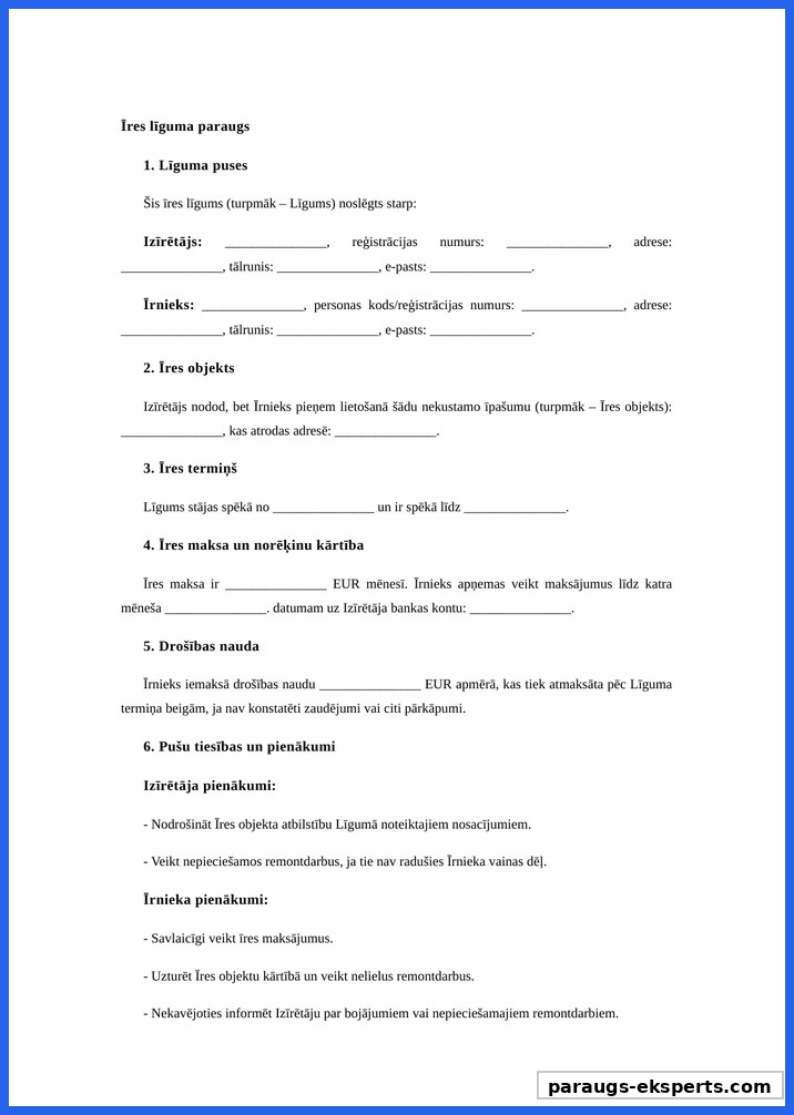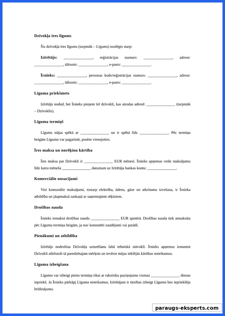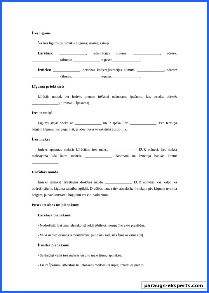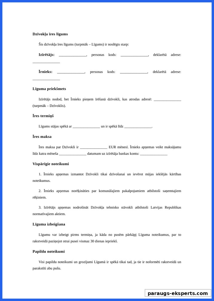 Dzīvokļa Īres Līgums Starp Fiziskām Personām Paraugs