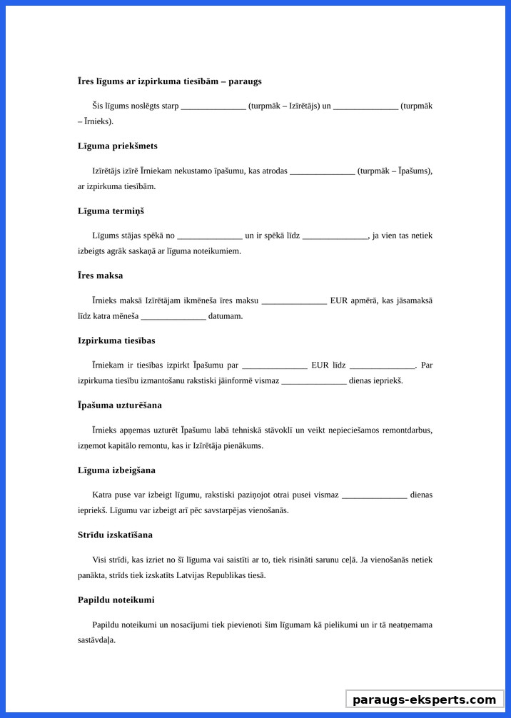 Īre Ar Izpirkuma Tiesībām Līguma Paraugs