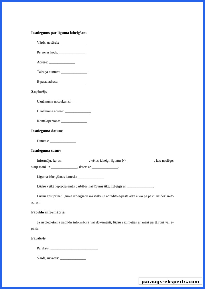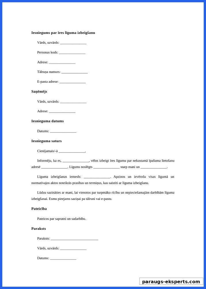 Iesniegums Par Īres Līguma Laušanu Paraugs