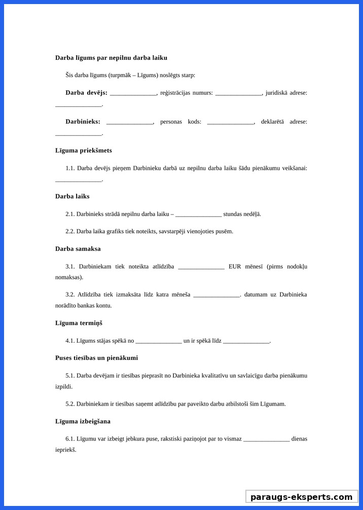 Darba Līgums Nepilns Darba Laiks Paraugs
