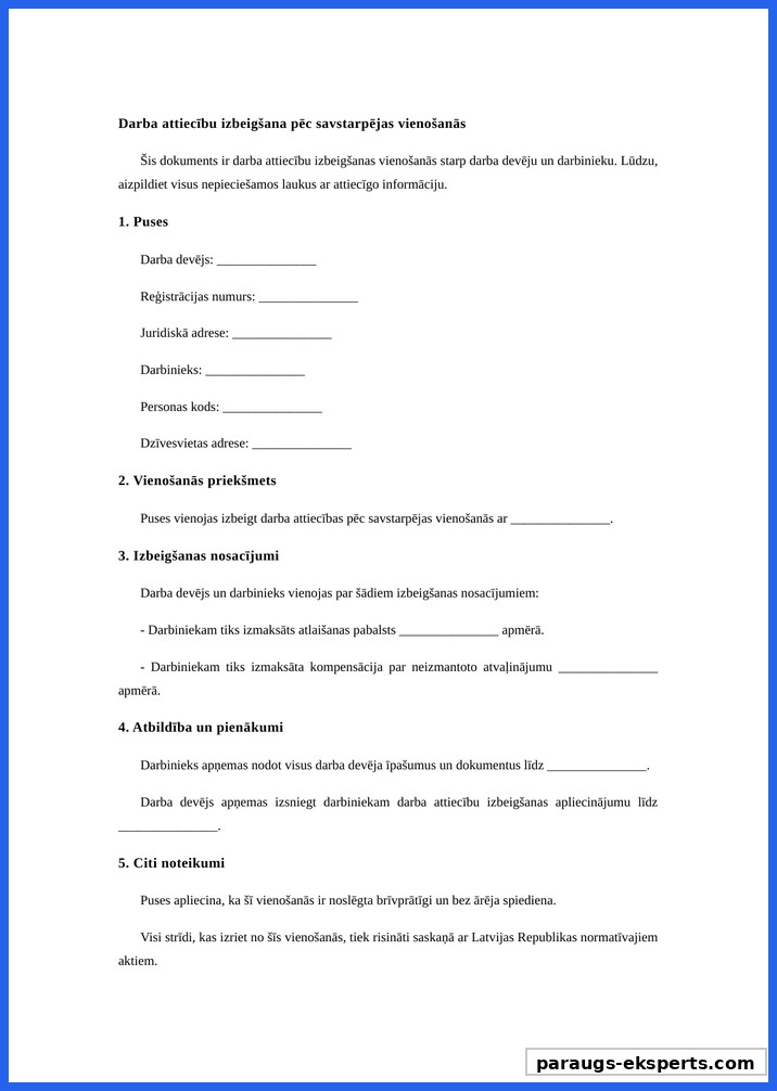 Darba Attiecību Izbeigšana Pēc Abpusējas Vienošanās Paraugs