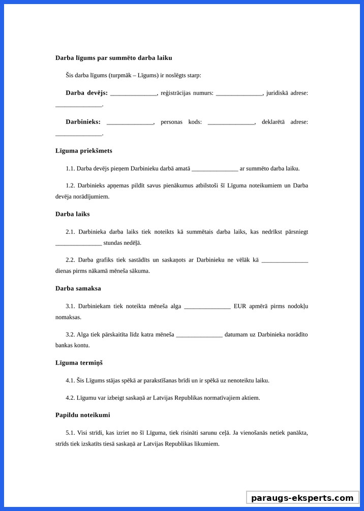 Darba Līgums Uz Noteiktu Laiku Paraugs