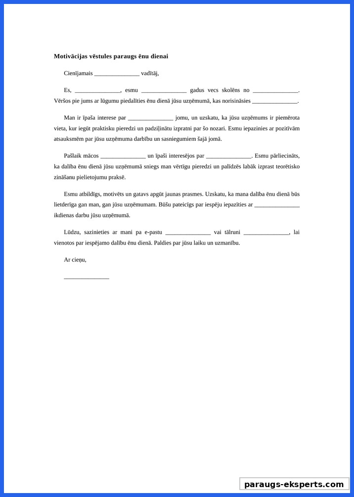 Motivācijas Vēstule Ēnu Diena Paraugs