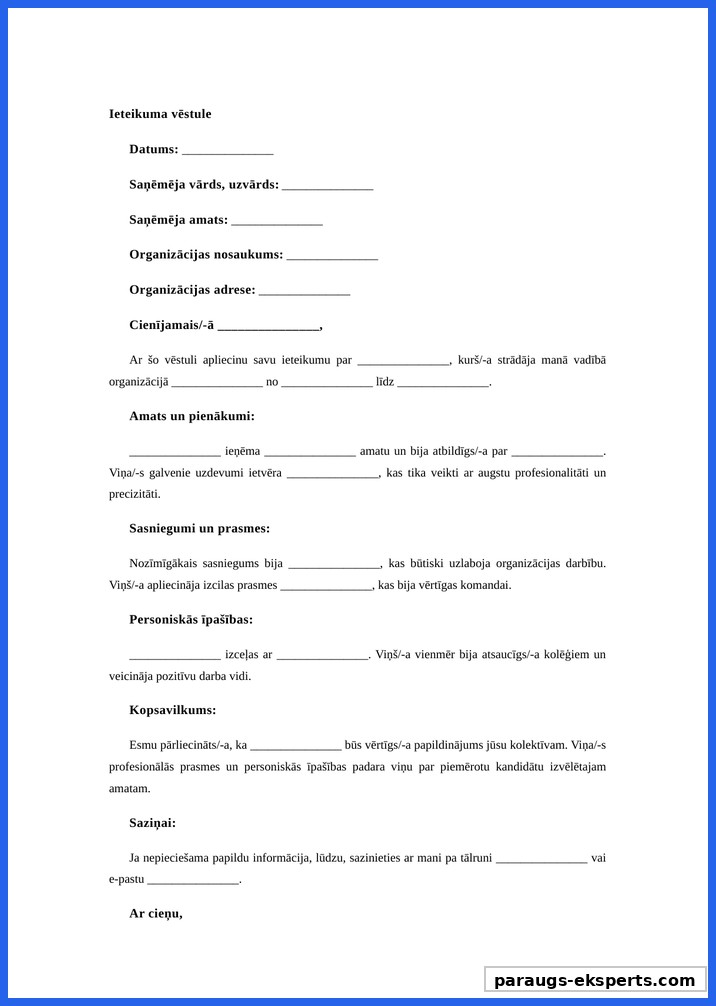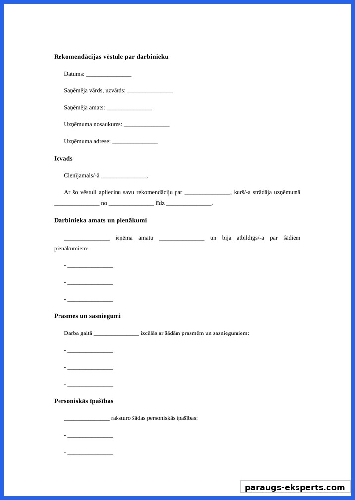 Rekomendācijas Vēstule Par Darbinieku Paraugs