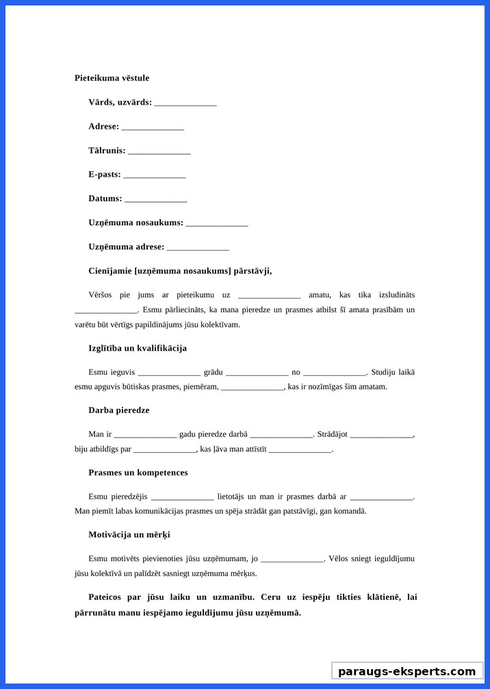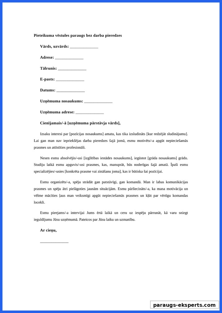 Pieteikuma Vēstule Paraugs Bez Darba Pieredzes